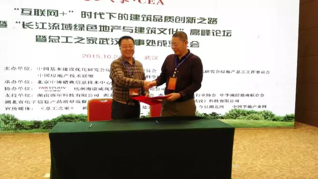 2015年10月24日至25日,“互联网+”时代下的建筑品质创新之路暨“长江流域绿色地产与建筑文化”高峰论坛暨总工之家武汉办事处成立大会在武汉九真山景区圆满闭幕。