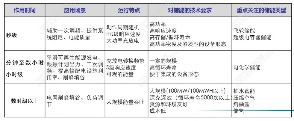 2010年12月美国能源部发布《电力系统对大规模储能技术应用需求》报告,根据当今电力系统的技术需求特征,将储能应用模式分为5大类17项。