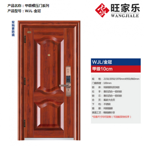 防盗门品牌哪家好?之材料的配套,一个防盗门产品选择了什么样的标准,可以在整体的设计中,有没有很好的耐用性,就是品牌产品一定要有优势的地方。旺家乐品牌防盗门信誉不错,就是因为在用料上考究。