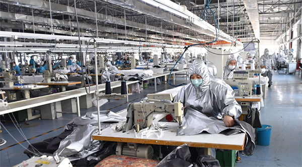 新兴际华统筹际华股份印发通知对强化战疫物资保障进行再部署,与企业签订“军令状”,坚持每日一调度、立即给答复,积极协调有关部委解决企业原材料、设备、交通、人员复工等难题。新兴际华所属3502、山西3534、涿州3543、绵阳3536和南京3521、3503、5302等7家企业,首批承制防护服生产任务。同时迅速启动森普利、3512、3504、7555等4家企业作为第二梯队迅速跟进。截至2月13日晚,新兴际华所属企业已经投入2300套设备、5200名职工,日产量再创新高。