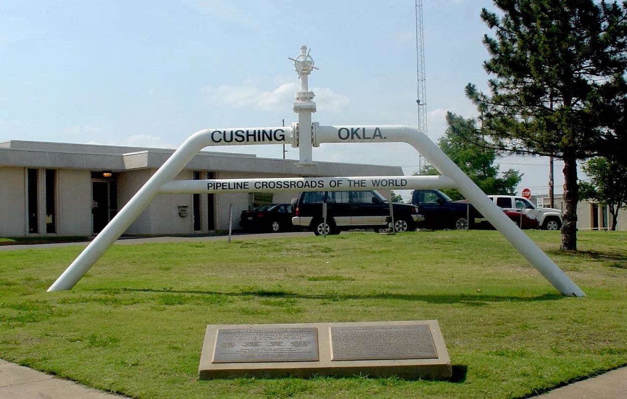 首先,一个与国际市场切割的、总人口不到8000人的美国小镇,居然把自己称为“世界管道十字路口”(Pipeline Crossroads of the World,见图),那里的风吹草动左右着WTI价格。那里的库存爆满和管道阻塞影响的顶多是美国市场,为什么库欣便秘却要让全世界肚子疼?