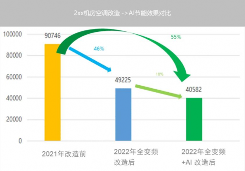 2.AI 系统节能增效: 引入Vertiv™ AI Room系统,额外节能18%,空调节能率达到55%,机房pPUE降低超过15%。