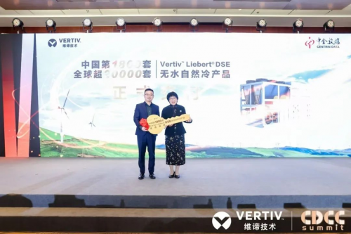 Vertiv™ Liebert® DSE空调已在全球部署超过2万套,总制冷功率超过7GW。活动现场,隆重举行了DSE空调国内第1800套的交付仪式。中金数据集团副总裁王薇薇、维谛技术大中华区市场营销与产品应用部高级总监顾华,共同完成了产品的正式交付。