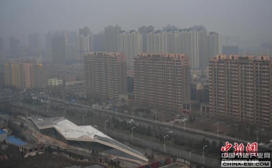 资料图:2016年12月19日,河北气象台继续发布霾红色预警和大雾橙色预警,该省多个城市空气严重污染。图为石家庄天空成暗灰色。 中新社记者 翟羽佳 摄