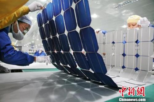 图为中盛光电集团太阳能生产车间。