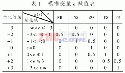 可将温差论域划分为7档{-3,-2,-1,0,1,2,3},通过统可得模糊变量e的统计表,如表1所示。